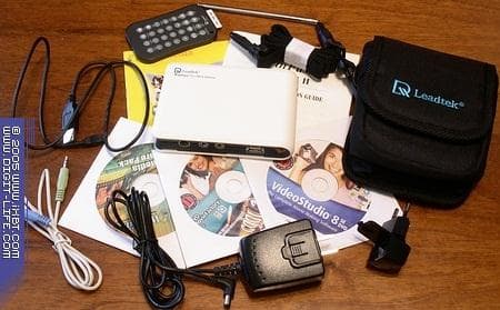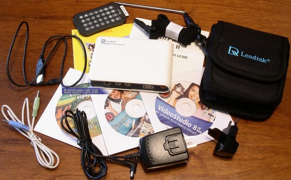 Leadtek не относится к числу производителей, экономящих на комплектации, к тому же, приставка Deluxe в названии тюнера накладывает определённые обязательства. Из коробки извлекаются:
