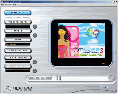Кроме вышеперечисленного, на установочном CD находится еще одна программа для редактирования видео с поддержкой формата DV — Muvee autoProducer 3.5 от MuVee Technologies.
