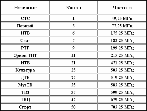 Список эфирных каналов при тестировании