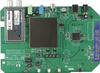 Металлический кожух скрывает 9-битный АЦП Philips SAA7113H и USB-контроллер EM2800 от EMPIA Technology Inc. Не совсем понятна причина такой экранировки, тюнеры конкурентов при более компактном расположении элементной базы прекрасно обходятся без нее.