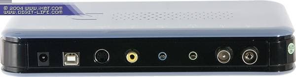 Место установки подставки скрыто заглушкой из мягкого пластика, аналогичная заглушка с противоположной стороны скрывает ряд отверстий непонятного назначения. Необходимость в дополнительных разъемах отсутствует, размеры тюнера позволили разместить на задней панели разъем питания, гнездо для подключения USB-коннектора, S-Video и композитный видеовходы, аудиовход, аудиовыход и антенные разъемы.