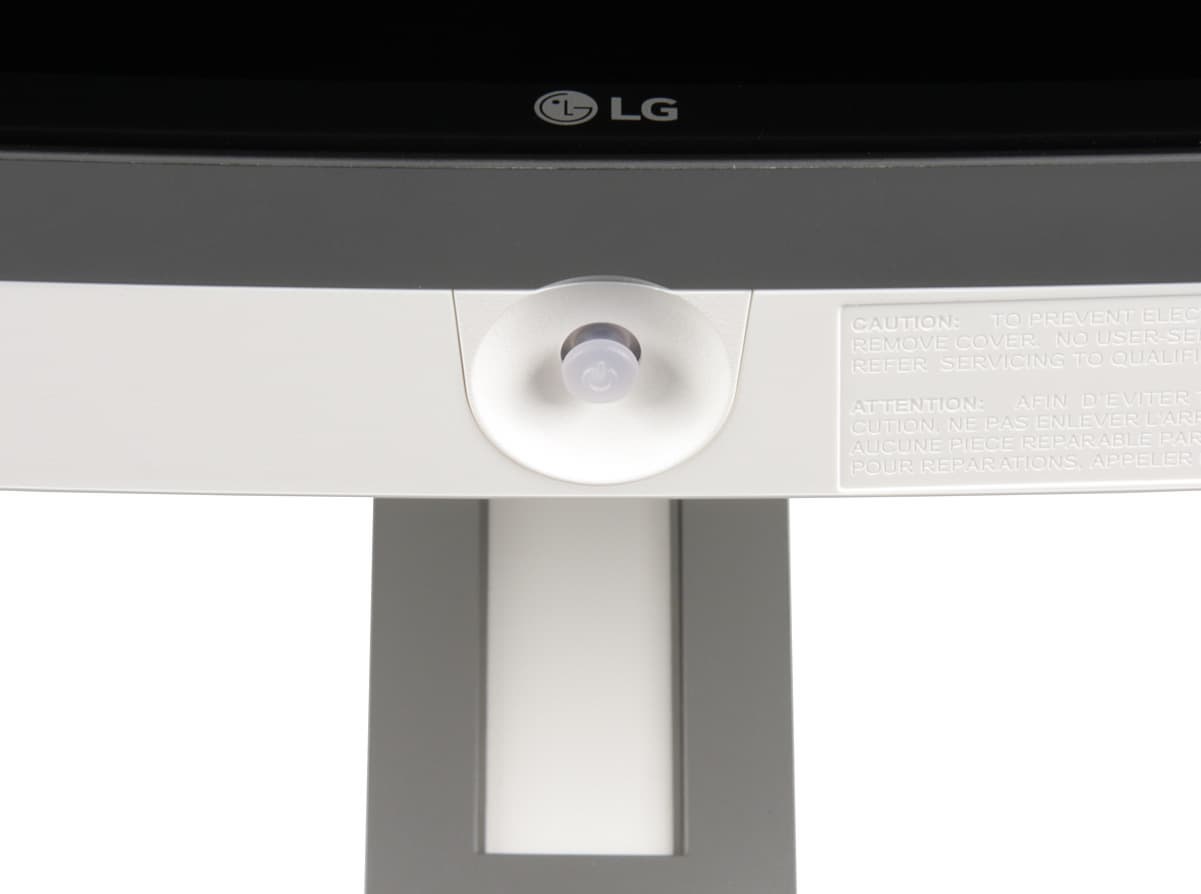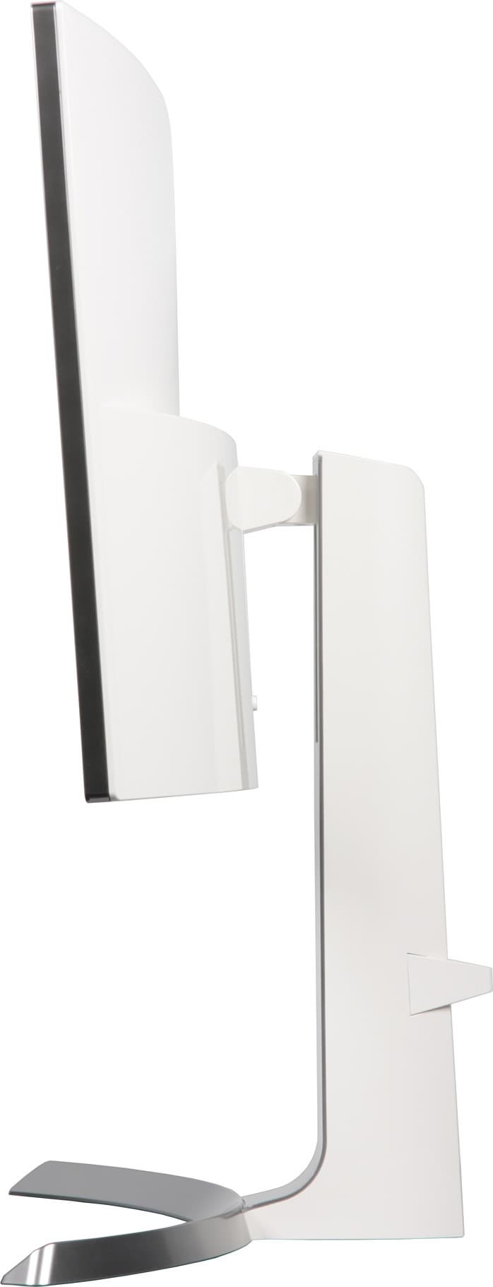 Подставка состоит из двух частей — из основания и стойки. Чтобы выдержать приличный вес монитора, основание стойки изготовлено из алюминиевого сплава и только сверху прикрыто кожухом из пластика, а несущие элементы стойки изготовлены из стали. Кожух основания и фронтальная часть кожуха стойки имеют серебристое покрытие, а задняя часть кожуха стойки — белая, зеркально-гладкая, как и задняя панель блока экрана. Кабели, идущие от разъемов монитора, можно прижать к стойке входящей в комплект поставки скобой из пластика.
