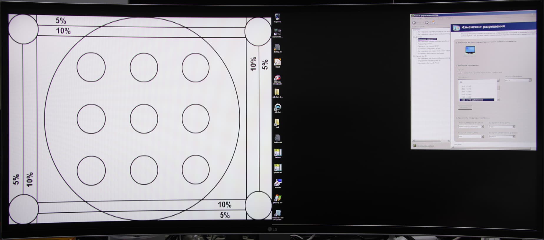Равномерность белого очень хорошая, а черного и, как следствие, контрастности — заметно хуже. Контрастность для данного типа матриц не низкая, но и не самая высокая. Визуально черное поле ближе к углам заметно высветляется — возможно, это связано с неравномерной деформацией изогнутого экрана: