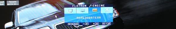 Как работает функция fEngine, мы уже рассказали в тесте 1980U, но с удовольствием повторимся (удобство заслуживает повторения): весь экран делится вертикально на две части, в одной из которых остается изображение со старыми настройками, а на другой применяется выбранный профиль. Вот так (фотография модели 1980U):