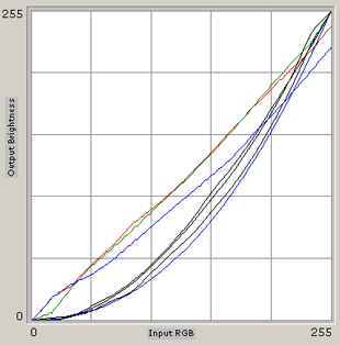 Датчик Pantone подтвердил наши претензии и к цветопередаче — наблюдается повсеместный избыток яркости синего канала, из-за чего OptiCAL рекомендует сильно урезать ее, начинается 10% яркости в каждом оттенке. Зеленый и красный каналы также имеют умолчальную избыточную яркость, хотя и не столь сильную, как у синего.
