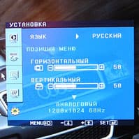 - Auto/Set для включения режима автонастройки изображения или сохранения измененного значения пункта меню.