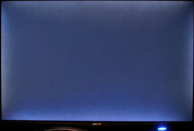 При любой яркости в тёмной комнате видна неравномерность подсветки, в данном случае не «андреевским флагом», когда лучики большей яркости идут из углов в центр экрана. Наоборот, максимальная засветка с боков, и она больше в центре каждой стороны, чем к углам. По горизонтали эффект выражен несколько меньше.