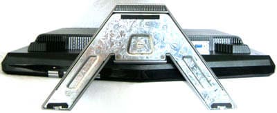 Подставка в виде открытого со стороны экрана треугольника обеспечивает устойчивое положение монитора на столе. Снизу — три резиновых полоски, основа — металлическая. Возможен наклон назад примерно на 20°, вперёд от вертикали экран наклонить нельзя, поворачивать и двигать по вертикали — тоже. На задней поверхности присутствуют крепёжные отверстия для крепления VESA 10×10 см. Снять подставку особого труда не составит.