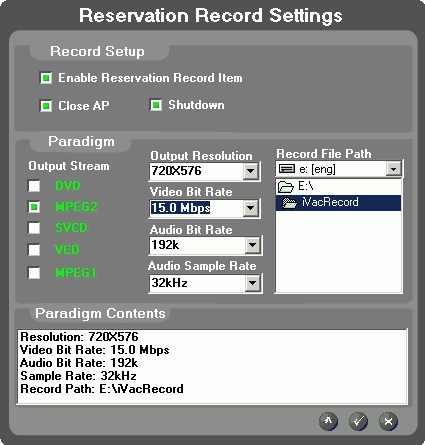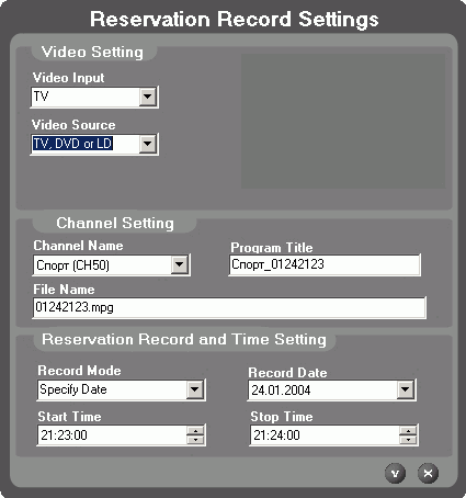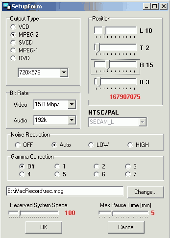 отвечает за параметры записи, по совместительству являющиеся и параметрами видимого изображения. Так что, заметив крупные пиксели, не спешите возвращать тюнер в магазин, а смените профиль VCD на что-нибудь с большим битрейтом.