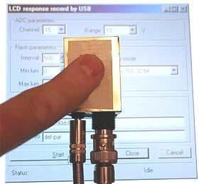 Аппаратная часть комплекса для измерения времени отклика состоит из фотодатчика, измеряющего относительную яркость на участке экрана тестируемого монитора, и USB-АЦП L-Card E-140 (макс. 100 кГц, работает на частоте 10 кГц, 14 бит) для оцифровки и ввода данных с датчика в компьютер, а также необходимых кабелей.