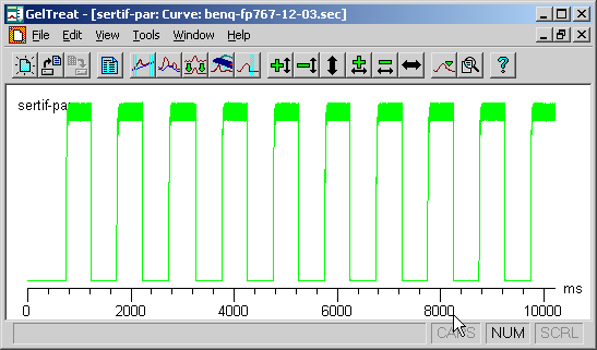 Программная часть комплекса — это программа GelTreat, позволяющая регистрировать и анализировать зависимости типа время-отклик, модифицированная для получения значений времен отклика.