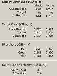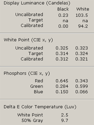 Калибруем датчик Pantone, проводим замеры цветопередачи при следующих настройках яркости и контраста:![]() данные для заводских установок | ![]() |