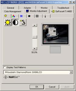 Конечно, визуально SX98LCD является молочным братом мониторов NEC серии 19xx. Но лишь братом, т. к. хорошо проверенное временем позиционирование параллельных продуктов отлажено «на отлично». И в данном случае монитор Mitsubishi имеет более дешевое воплощение: там где у NEC металл — тут пластик, там где в 1960 жесткая конструкция — в 98SX наблюдаются легкие люфты. Ну и круглые кнопки вместо нэковских прямоугольных. Зато где нет экономии, так это на задней панели — тут и два DVI (-I и -D), и D-Sub, и отдельный выключатель питания. Даже больше — если в комплекте с 1960NXi DVI-кабеля не обнаружилось, то здесь он присутствует.