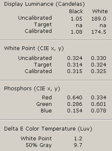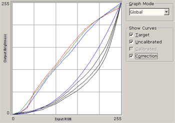 Если посмотреть на графики с кривыми коррекции цветопередачи, то картина вырисовывается довольно приличная: монитор неплохо отстроен инженерами Mitsubishi, хотя ему и не хватает яркости в середине диапазона полутонов. Перекосов по каким-то отдельных цветовым каналам нет и это хороший качественный показатель.
