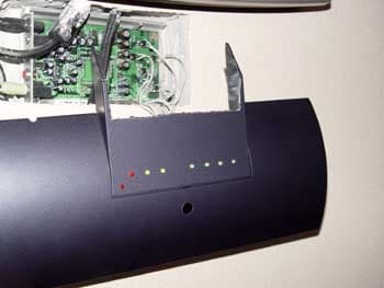 Верхняя часть кнопок была выполнена из цветных диодов от старого хаба. На мой взгляд, получилось очень привлекательно. Только вот подсветку этих самых кнопок я делать не стал — обилие светящихся диодов не вызывает у меня приятных чувств. Очень напоминает серверную стойку, хотя это дело вкуса. Можно продублировать и вывести на панель все разъемы тюнера. Все зависит от того, захотите вы их использовать в дальнейшем или нет.