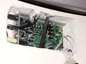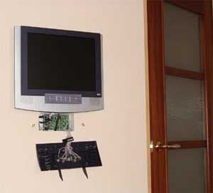 Далее самый неудобный, но важный момент. Т. к. все провода впоследствии будут закрыты, и возможности изменять их длину у нас не будет, как можно точнее отмеряем длину оставшихся незакрытых проводов, которые будут соединять тюнер с монитором. Собираем всю систему, и отмечаем длину, позволившую нам в последствии без помех собрать все воедино.
