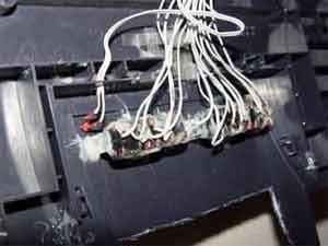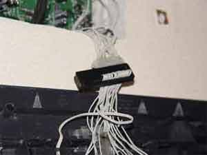 Кнопочное управление тюнером было реализовано следующим образом. Были припаяны провода к кнопкам на устройстве, а также к ИК-приемнику и диоду, сигнализирующему о работе устройства, для этого использовался обычный IDE-шлейф. Кнопки-дубликаторы были размешены на подставке монитора, которая в свою очередь явилась декоративной панелью, прикрывающей часть тюнера.