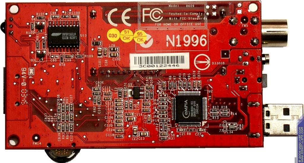 Знакомый нам по Transcend USB2.0 TV-Box контроллер EM2800 от EMPIA Technology Inc. отвечает за передачу потока через интерфейс USB 2.0.