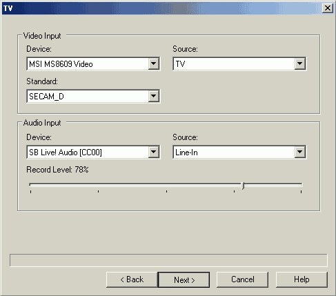 Выбрав SECAM_D и Line-In (похоже, что для тюнеров с EM2800 передача звука по USB реализована не будет)
