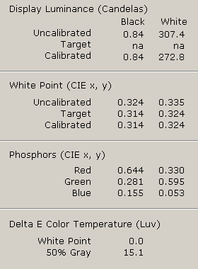 По значению яркости 1970GX также недобрал канделл — примерно 25%, показав 307 вместо паспортных 400. А по соотношению контрастности и совсем плохо — лишь 365:1, но никак не 700 (да и где вы видели 700 у TN+film? Видимо там же, где и 8 мс).