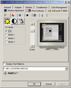 Не секрет, что мы считаем матрицу TN+film весьма неоднозначной технологией. С одной стороны, прогресс по увеличению скорости отклика («8ms» у нашего подопытного) и углов обзора налицо. С другой, мнимые рекордные цифры столь же далеки от реальных условий, как и раньше. Да и вертикальные углы обзора, мягко говоря, катастрофичны до сих пор. Можно ли ожидать, что японцы из NEC совершат технологическое чудо? В наших душах затаился большой скепсис (горбатого лишь могила исправит).