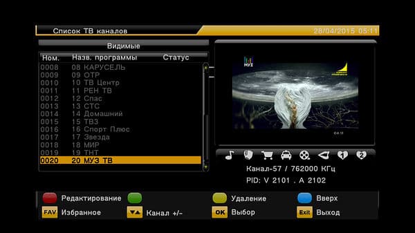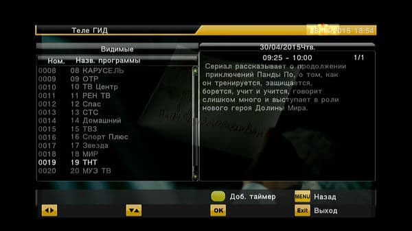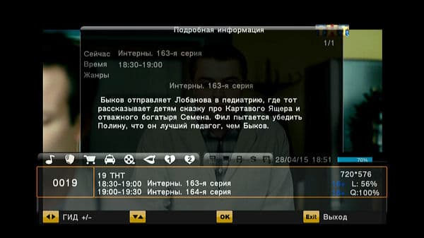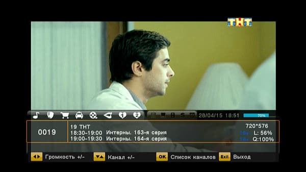 Основной графический интерфейс ресивера не отличается строгостью, однако информативность находится на очень хорошем уровне.