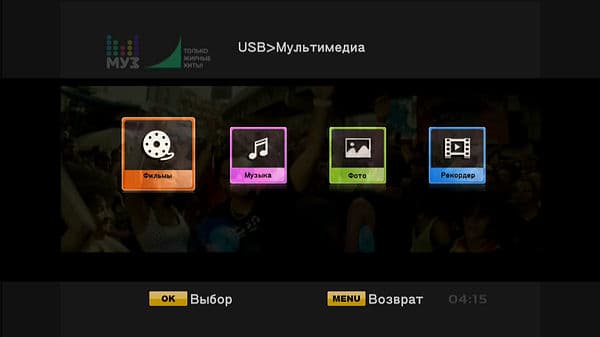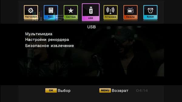 Раздел «USB» позволяет перейти к проигрывателю и настроить параметры записи и режима отложенного просмотра, поддерживается безопасное извлечение накопителя.