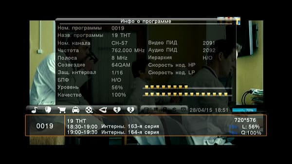 Второе и третье нажатия на кнопку Info выводят дополнительную информацию о передаче и технические параметры.