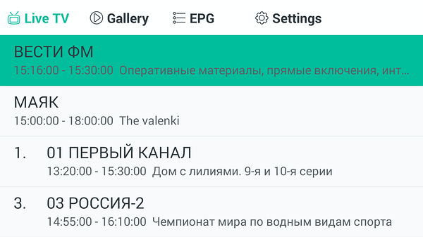 После выбора канала в первом разделе запускается окно просмотра.