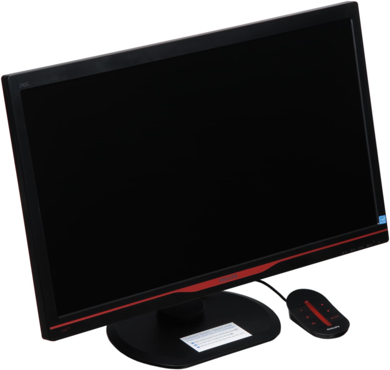 К сожалению, монитор нам достался с документацией от другой модели, но на сайте Philips мы нашли руководство к модели 242G5 на русском языке в виде PDF-файла. Можно предположить, что при продаже в коробке с монитором будет краткое руководство в напечатанном на бумаге виде и CD-ROM, на котором будут PDF-файлы с полным руководством, драйвер монитора (традиционные файлы INF и CAT и профиль цветокоррекции (ICM)), а также ПО SmartControl, позволяющее настраивать монитор с компьютера с помощью удобного графического интерфейса.