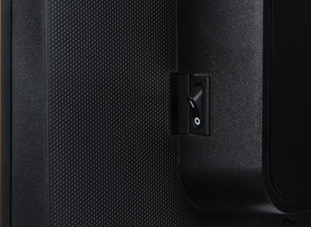 В режиме ожидания монитор потребляет 0,5 Вт, в выключенном состоянии — 0,3 Вт, а механический выключатель на задней панели полностью обесточивает монитор.