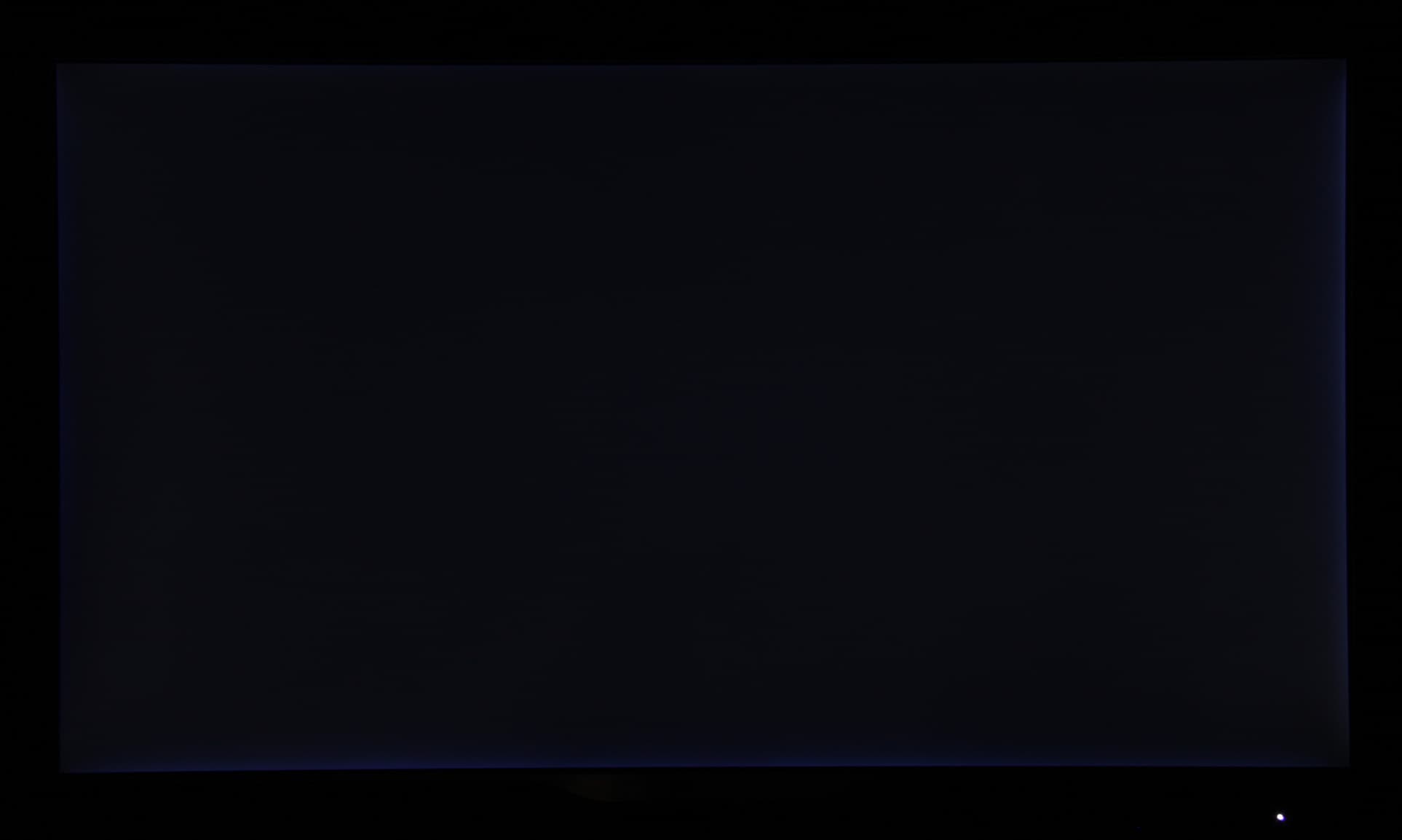 Аппаратные измерения показали отличную равномерность всех трех параметров. Визуально черное поле равномерное на большей части площади экрана и только вдоль границ в узкой области яркость местами слегка повышается. Фотография ниже это демонстрирует: