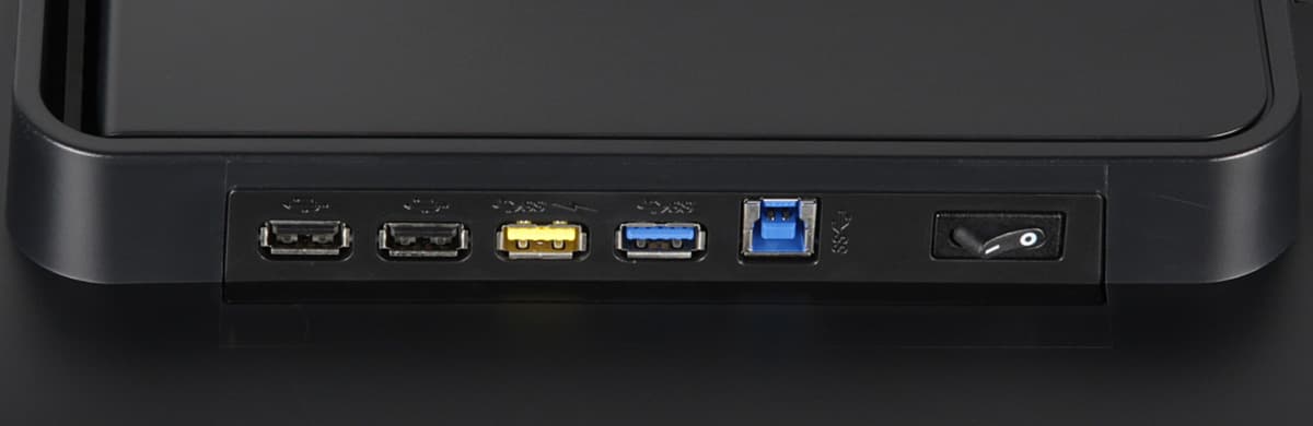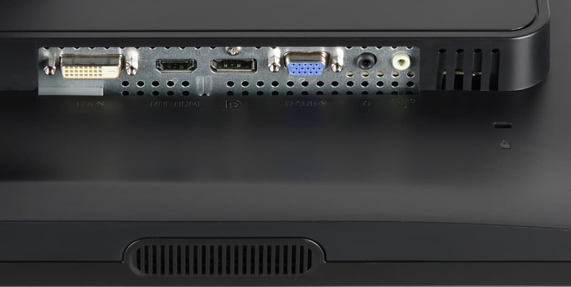 Вход HDMI допускает подключение по MHL с заявленной поддержкой сигнала до Full HD при 60 кадр/с. Вот только соответствующий кабель-переходник с HDMI на Micro-USB пользователю придется где-то еще купить. Все цифровые входы принимают сигнал до 3840 на 2160 пикселей, но только в случае DisplayPort при этом поддерживается до 60 Гц кадровой частоты (при выборе режима с версией 1.2), DVI-D и HDMI в этом разрешении работают максимум с кадровой частотой в 30 Гц. Аналоговый VGA-вход поддерживает максимум 1080p при 60 Гц кадровой частоты. Входы HDMI и DisplayPort способны принимать цифровые аудиосигналы (только PCM стерео), которые выводятся после преобразования в аналоговый вид через гнездо миниджек 3,5 мм или на встроенные громкоговорители. К этому гнезду можно подключить внешнюю активную акустическую систему или наушники. При работе с источником аналогового звука нужно задействовать второй разъем миниджек 3,5 мм. Встроенные громкоговорители звучат согласно их размерам и акустическому окружению — достаточно громко, чтобы сидящий перед монитором пользователь хорошо слышал системные сигналы, без низких частот вообще, с выраженным «пластиковым» призвуком из-за резонансов корпуса, со слабым стереофоническим эффектом. Мощности выхода на наушники хватило, чтобы в 32-омных наушниках с чувствительностью 112 дБ был хороший запас громкости. Качество звука в наушниках среднее — отсутствует низкие частоты, звук не очень приятный, но хоть в паузах шума не слышно.