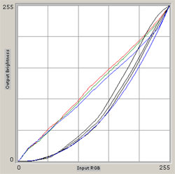 Увеличение контраста приводит к равномерному прогибу кривых, как и снижение яркости.