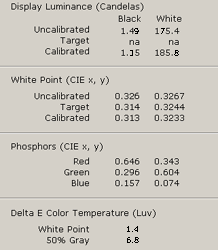 Параметр яркость не дотягивает до паспортного, однако здесь тот самый случай, когда потери при двойном преобразовании сигнала (сначала в АЦП видеокарты, а потом и внутри блока монитора) вполне могут портить (а обычно именно так происходит) крайние значения.