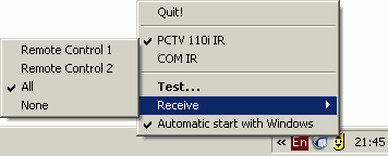 Пульт также знаком нам по Media Center 300i. К эргономике пульта есть только одно замечание — размер. С другой стороны, мне часто приходилось слышать нарекания на популярный в последнее время слим-дизайн. К тому же, пульт прекрасно справляется с управлением универсальной программой. Питание осуществляется от батареек типоразмера АА. Резидентная программа теперь поддерживает 2 пульта при наличии варианта с подключением к COM-порту.