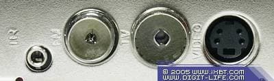 PCTV 110i поддерживает FM-радио, поэтому место композитного разъёма (соответствующий источник подключается к разъёму S-Video через переходник) занимает гнездо для подключения FM-антенны. Любопытно, что в данном случае используется «перевёрнутый» IEC-разъём, привычный антенный коннектор размещается на самой плате. При этом комплектная антенна удивила двойным кабелем на обоих концах диполя.