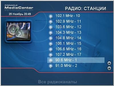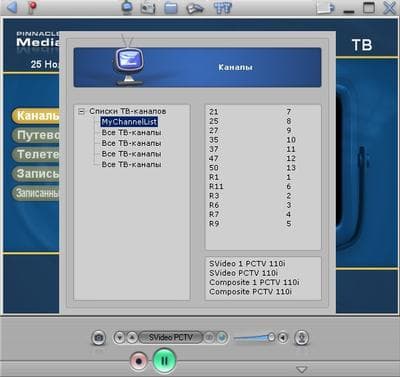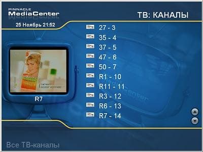 Однако при внимательном рассмотрении интерфейс обнажает второе дно. Часть MediaCenter, ответственная за работу с тюнером, может иметь более привычный для программ, предназначенных для этих целей, вид. Реализовано это до гениальности просто — соответствующие панели появляются в верхней и нижней части окна.