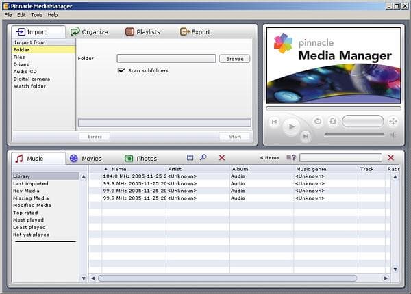 Для сортировки медиа-файлов и создания списков воспроизведения служит ещё одна программа — Pinnacle MediaManager. Как ни странно, до перевода интерфейса на великий и могучий дело пока не дошло.