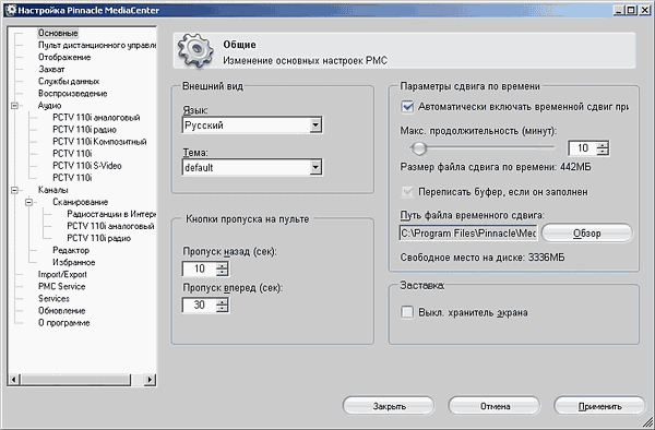 P. S.: Запись файлов и режим Timeshift в Pinnacle MediaCenter осуществляются программно, в связи с чем использование этой оболочки не рекомендуется на компьютерах с процессорами, имеющими частоту ниже 1,8 ГГц (при условии отсутствия параллельно запущенных ресурсоёмких задач). Рекомендуемые системные требования включают в себя ЦП от 2,4 ГГц и выше.