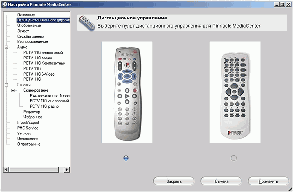 Следующим пунктом идёт выбор пульта ДУ.