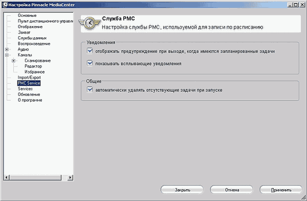 При использовании пульта ДУ крайне желательно не включать всплывающие уведомления в настройках сервиса для записи по расписанию. Их появление приводит к потере «фокуса» программы и необходимости вновь переключаться на неё (Alt-Tab, курсор мыши) для продолжения работы с пультом.