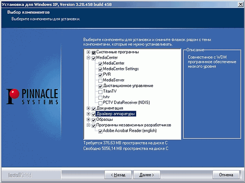 Возможность использования MediaCenter в качестве универсальной мультимедийной оболочки и наличие в комплекте поставки программы Pinnacle Studio 9.4 Quick Start для обработки видеофайлов позволяют присудить Pinnacle PCTV 110i награду за комплектацию.