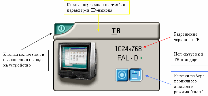 2. Настройка параметров вывода на ТВ. Режим «клон» (clone)
