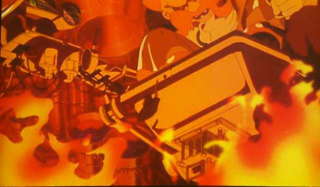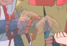 На сцене 4 увеличена в 9 раз центральная область кадра в эпизоде из аниме «Метрополис» (момент, когда повреждено «сердце» у Тимы и мигает красный свет). Здесь хорошее качество показывает на стоп-кадре только RADEON 9000, а в динамике — ещё и 7500. RADEON 8500 и 9700 тут (и вообще на подобных сценах) показывают неудовлетворительное качество адаптивного деинтерлейсинга даже в динамике.