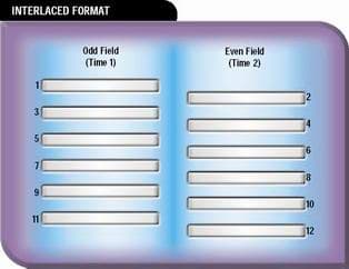 Рис.1. Наглядное представление чересстрочного формата. Каждый кадр получается из двух полей (field).