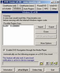 Рис.15. Выбор в DVD Genie регионального кода Windows.