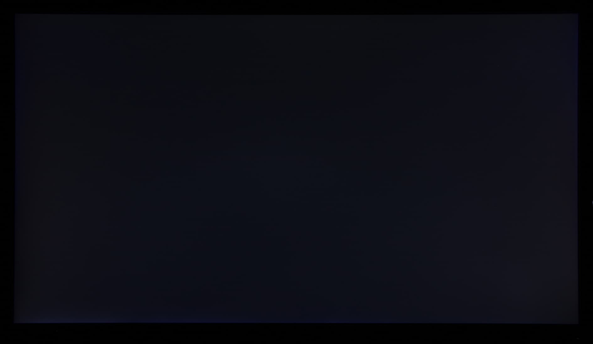 Аппаратные измерения показали хорошую равномерность всех трех параметров. Визуально черное поле равномерное на большей части площади экрана и только вдоль нижней границы в узкой области яркость слегка повышается. Фотография ниже это демонстрирует: