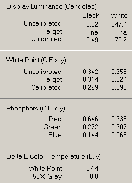 Что касается пиковой яркости, то она недотянула прилично до паспортной, а глубина черного цвета в центре экрана (это самая удаленная от ламп подсветки область) составила приличные 0,52 Кд, что в итоге дает вычисляемый коэффициент в 475:1. Это хорошо, но на фоне заявленных 900:1 и истории взаимоотношения с другими мониторами на матрице PVA, — не фонтанирует.