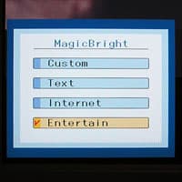 Настраивая монитор для тестирования мы обратили внимание на заводские установки яркости и контраста: 80% и то, и другое. Более того, данное значение контрастности Samsung считает оптимальным, так как при использовании режима MagicBright (настроенного на 3 предустановленных режима: текст, развлечения и Интернет) предварительно выставленные параметры сбрасываются в те самые 80% контраста и 35, 50 и 85% яркости соответственно.